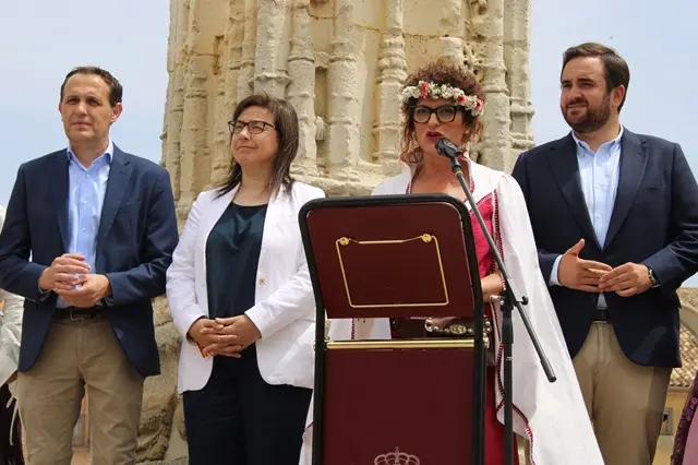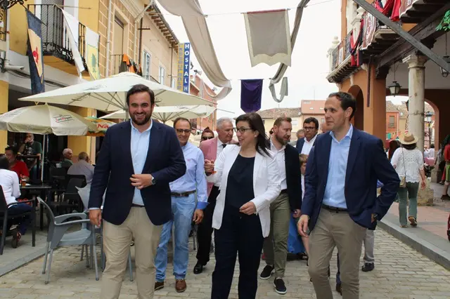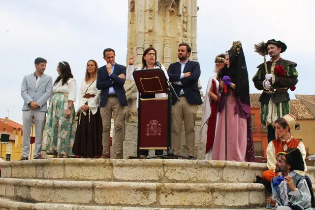 Este sábado 8 de junio se ha celebrado el pregón inaugural del XXIII Mercado Comarcal y la XX Feria Agroalimentaria de Villalón que ha corrido a cargo de la diputada de las Cortes Generales, la gallega Ana Belén Vázquez, acompañada por el alcalde de Villalón, José Ángel Alonso, y el presidente de la Diputación de Valladolid, Conrado Íscar. Ana Vázquez puso el foco en la conservación de las tradiciones y fiestas como la verdadera lucha contra la despoblación en el medio rural y puso en valor los puntos en común entre Ourense y Villalón, dos tierras unidas por los Condes de Benavente. Aquí te dejamos una galería de fotografías de la jornada inaugural del mercado medieval de Villalón de Campos.