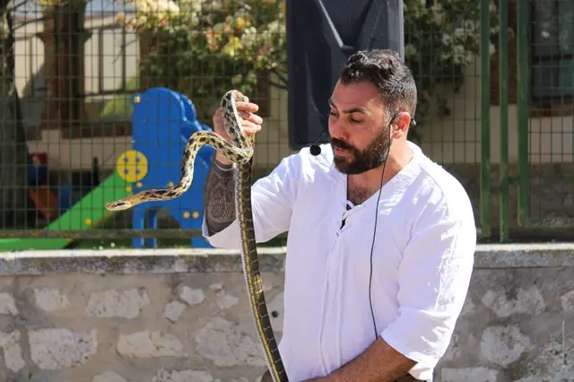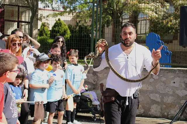 Ya desde por la mañana, las calles de Fuensaldaña respiraban un ambiente de tradición para regresar al medievo por unas horas y que los más pequeños pudieran también conocer toda nuestra historia a través de esta cita tan especial. Pequeños y mayores disfrutaron en la jornada del sábado de uno de los grandes atractivos del Mercado Medieval con la exhibición de reptiles y cetrería, que dejó momentos muy simpáticos con lagartos, serpientes, tortugas o lechuzas. Todo ello ambientado por banderas y estandartes de antaño y con el olor de dulces y asados que invitaban a pasar una jornada de época. Las atracciones infantiles también despertaron la curiosidad de los más pequeños por saltar en un castillo hinchable o montarse en un clásico tiovivo. La jornada medieval concluyó en Fuensaldaña con el espectáculo de fuego que cautivó tanto a vecinos como a los cientos de visitantes que quisieron disfrutar del momento. A continuación, no te pierdas un resumen fotográfico del Mercado Medieval 2025 de Fuensaldaña.
