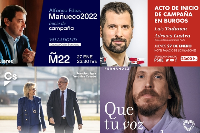 El presidente en funciones de Castilla y León, Alfonso Fernández Mañueco, inició su campaña en busca de mantener la presidencia de la Junta en Valladolid en la caseta ubicada en la Calle Santiago donde se ha reunido con sus compañeros de formación y simpatizantes para aunar fuerzas de cara a los comicios. Por su parte, el candidato del PSOE, Luis Tudanca, ha iniciado su campaña con un acto político en su ciudad natal. Burgos ha sido el escenario elegido por el socialista como símbolo de fuerza par volver a ganar las elecciones, pero esa vez, gobernando. Tudanca ha estado acompañado durante este inicio de campaña por la vicesecretaria general del PSOE, Adriana Lastra, la secretaria general del PSOE de Burgos, Esther Peña y el alcalde de Burgos, Daniel de la Rosa.