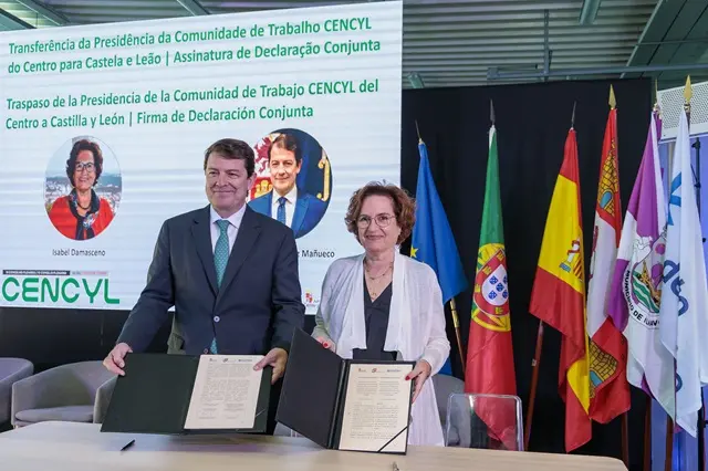 En el VI Consejo Plenario de la Comunidad de Trabajo Centro de Portugal-Castilla y León que se ha celebrado hoy en Aveiro, el presidente del Ejecutivo autonómico, Alfonso Fernández Mañueco, ha firmado junto a la presidenta de la Comisión de Coordinación y Desarrollo Regional del Centro de Portugal (CCDR), Isabel Damasceno, la 'Declaración de Aveiro 2024'. Este documento recoge su compromiso para potenciar la cooperación entre ambos territorios, y entre otras cuestiones, reivindicar institucionalmente el impulso del Corredor Atlántico. En este acto, en el que Castilla y León ha asumido la Presidencia de CENCYL, se ha abordado la importancia estratégica que tiene el Corredor Atlántico a la hora de contribuir al desarrollo económico, social y medioambiental.