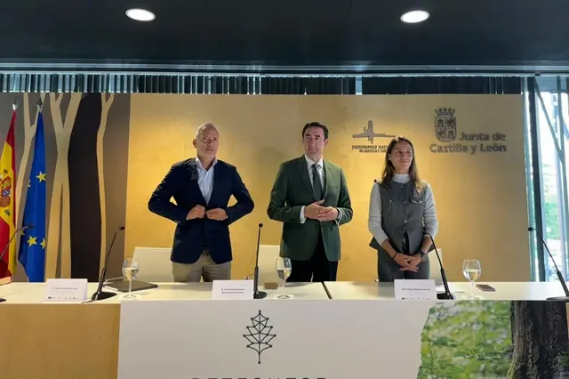 El consejero de Medio Ambiente, Vivienda y Ordenación del Territorio, Juan Carlos Suárez-Quiñones, junto con la directora general de Inteligencia Artificial del Ministerio para la Transformación Digital y de la Función Pública, Aleida Alcaide García, y el director de la Agencia Canaria de Investigación, Innovación y Sociedad de la Información de la Consejería de Universidades, Ciencia e Innovación y Cultura del Gobierno de Canarias, Javier Franco, han presentado hoy el proyecto RetechFOR en Valladolid. Este proyecto se enmarca en el programa nacional de Redes Territoriales de Especialización Tecnológica, impulsado por la Secretaría de Estado de Digitalización e Inteligencia Artificial para promover la transformación digital en el territorio español, aprovechando las potencialidades de cada Comunidad. La inversión global asignada a RetechFOR es de 28,45 millones de euros.