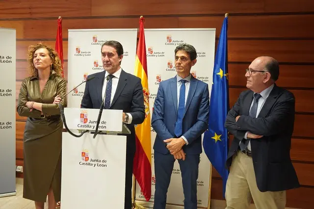 El consejero de Medio Ambiente, Vivienda y Ordenación del Territorio ha presidido este martes la firma del convenio entre la Junta, a través de la Sociedad Pública de Medio Ambiente (Somacyl) y las nueve entidades financieras para la concesión de garantías destinadas a facilitar el acceso de jóvenes a su primera vivienda en régimen de propiedad. La Junta garantizará la financiación de hasta el 17,5% del precio de la vivienda, porcentaje que se suma al préstamo hipotecario que conceden las entidades bancarias de hasta el 80% del precio de la vivienda. Con esta garantía de la Junta, los jóvenes de hasta 35 años que quieran comprar su primera vivienda solo necesitarán para la entrada disponer del 2,5% del valor de la propiedad.