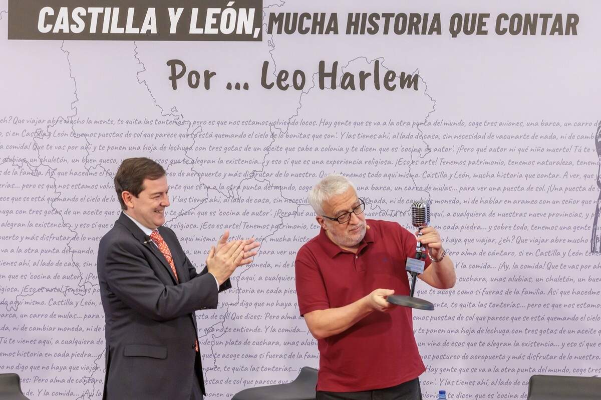 El cómico Leo Harlem tiene mucha historia que contar de Castilla y León. Bajo este contexto, se ha presentado este martes 30 de diciembre el proyecto divulgativo 'Castilla y León, mucha historia que contar', impulsado por la Junta de Castilla y León. Precisamente, el presidente autonómico Alfonso Fernández Mañueco ha dado a conocer esta iniciativa que cuenta con la participación del comunicador y humorista Leo Harlem.