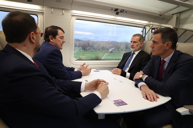El presidente de la Junta de Castilla y León, Alfonso Fernández Mañueco, ha acompañado este miércoles 29 de noviembre al Rey Felipe VI y al presidente del Gobierno de España, Pedro Sánchez, en el trayecto de inauguración oficial de la Variante de Pajares, donde también ha defendido la conservación del actual trazado a través de la rampa de Pajares, con paradas en diferentes municipios rurales. En Oviedo, tras finalizar el primer trayecto, el presidente autonómico ha vuelto a recordar al Gobierno de España las numerosas infraestructuras pendientes y que son necesarias para la vertebración de la Comunidad y del noroeste del país.