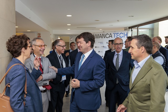 El presidente Mañueco ha señalado que hoy, en el foro Salamanca Tech Day, ha podido constatarse una "excelente" representación para que la Comunidad siga dando pasos en innovación tecnológica, en transferencia de conocimiento, en biomedicina aplicada y en logística, con Salamanca como polo de referencia, dado que Castilla y León ya cuenta con palancas clave de innovación, emprendimiento y digitalización para conseguir un crecimiento económico sostenible. "Estos logros se consiguen facilitando, con la especialización y la atracción de talento, la generación de más empleo y de mayor calidad; también aunando el esfuerzo y la colaboración entre distintas administraciones, universidades e iniciativa privada, sin olvidar la colaboración público-privada, y todo ello acompañado de una innovación abierta, que actúe como motor de cambio transformador de la sociedad", explica el presidente autonómico.