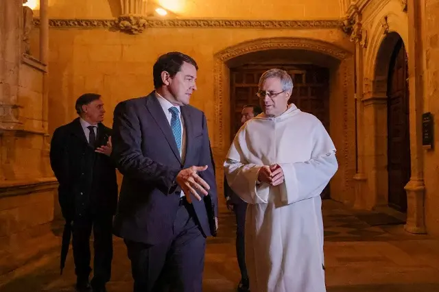 Mañueco ha destacado el diálogo institucional en Castilla y León, por haberse practicado siempre desde un alto nivel. Ejemplo de ello son las Conferencias de Presidentes, una de ellas en el propio Convento de San Esteban o también los convenios de colaboración suscritos con otras comunidades vecinas.