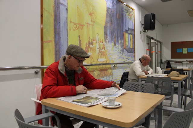 Pero las ventajas de acudir a los Centros de Vida Activa solo nos las pueden contar sus propios usuarios. Nada más entrar por la puerta principal del Centro de San Juan su directora Berta Martínez nos recibe con los brazos abiertos y una gran sonrisa para presentarnos a todas las personas que a diario disfrutan de los servicios del centro municipal. Por el pasillo nos cruzamos ya con Miguel Gerardo Martínez, de 80 años, y sin dudarlo nos cuenta que le gusta mucho acudir al centro porque "te entretienes y pasas el rato". "La gente mayor que ya no tenemos obligaciones, aquí podemos pasar el día. Suelo venir por las mañana a leer la prensa, me tomo un café, charlo con alguien un rato y me gusta mucho hacer alguna actividad para trabajar la mente (ríe) por eso me apunto a informática o a memoria", nos cuenta. También vemos nada más abrir la puerta de la biblioteca, que bajo la gran estantería de libros se encuentra un hombre con un periódico a un lado y otro con un libro de poesía.