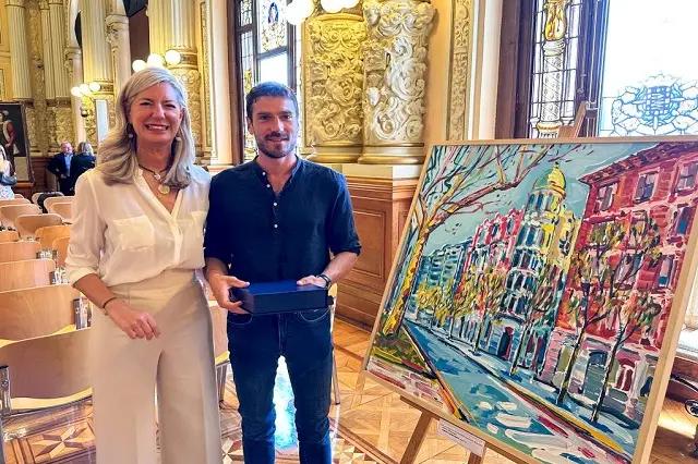 El vallisoletano Carlos Casado recibe el galardón del Premio de Pintura Rápida de San Pedro Regalado