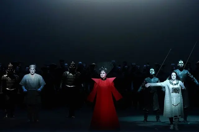 La composición musical incluye una de las arias para tenor más famosas de todos los tiempos, Nessun Dorma, un canto que representa la victoria del amor sobre el odio. En esta producción, la música de Puccini se acompaña de una impactante puesta en escena creada por Bob Wilson y cuenta con la dirección musical de Nicola Luisotti, el Coro y la Orquesta Titulares del Teatro Real y los intérpretes Saioa Hernández (princesa Turandot), Vicenç Esteve (emperador Altoum), Fernando Radó (Timur), Martin Muehle (príncipe desconocido, Calaf), Miren Urbieta-Vega (Liù), Germán Olvera (Ping), Moisés Marín (Pang), Mikeldi Atxalandabaso (Pong) y Gerargo Bullón (mandarín).