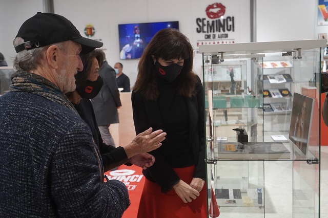 En las vitrinas que flanquean la alfombra roja que lleva a la recepción, se muestran algunos de los objetos más significativos de la historia de SEMINCI como la colección de trofeos del festival (desde el Lábaro de oro a las Espigas renovadas en 2016), la evolución de los logotipos o el acta fundacional del Consejo Rector del certamen firmado en 1981 por Tomás Rodríguez Bolaños, el entonces alcalde de Valladolid. En un lugar destacado también se podrá ver la Espiga de Oro Especial que la Seminci entregó en 1993 al escritor Miguel Delibes, entusiasta seguidor del festival.