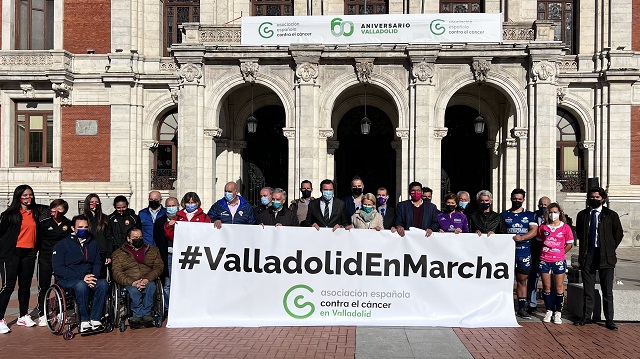 El alcalde, Óscar Puente, el concejal de Participación Ciudadana y Deportes, Alberto Bustos, y el presidente de la AECC Valladolid, Artemio Domínguez, se han dado cita en una acto de apoyo a la X Marcha contra el Cáncer en la Plaza Mayor de Valladolid acompañados por representantes de distintos clubes deportivos de la ciudad como el Real Valladolid Club de Fútbol; Real Valladolid Baloncesto; Club Deportivo Parquesol Femenino; Baloncesto en Silla de Ruedas; Club Balonmano Valladolid; Club Deportivo Balonmano Aula; Club Patinaje en Línea de Valladolid; Club Atletismo Valladolid; Racing Valladolid Atletismo; Rugby El Salvador; Valladolid Rugby Asociación Club; Federación Castellano Leonesa de Tiro con Arco; Federación de deportes de montaña, escalada, senderismo de Castilla y León; Federación de Ajedrez de Castilla y León; y la Federación de Fútbol de Castilla y León.