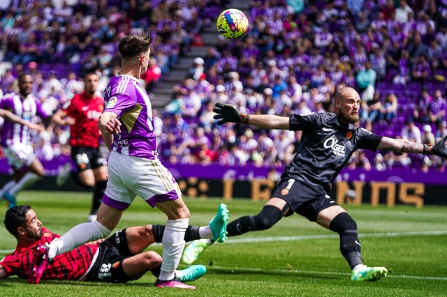 El desenlace de esta jornada 28 ha sido cruel para los blanquivioletas, que arrancaban este Domingo de Resurrección con la única idea de vencer junto a la afición, en Zorrilla, en el estreno de Pezzolano en el banquillo. El equipo fue intenso en la recuperación pero no encontró con balón la fluidez deseada, lo que llevó a un duelo igualado con ocasiones en ambas áreas. Lucas Rosa, en el 8', tuvo la primera pero su disparo desde el lateral del área se fue arriba, aunque las más claras fueron para los baleares, que se toparon con un decisivo Masip. El portero y capitán salvó, en dos ocasiones, sendas opciones de Amath para permitir seguir con vida, algo que aprovechó, y de qué manera, Kike Pérez. En el minuto 33 una transición rápida que arranca Roque Mesa, prolonga para Plano, quien deja a Lucas Rosa para poner un centro al otro lado del área. Ahí controló el centrocampista blanquivioleta para inventarse una preciosa volea y subir el 1-0.