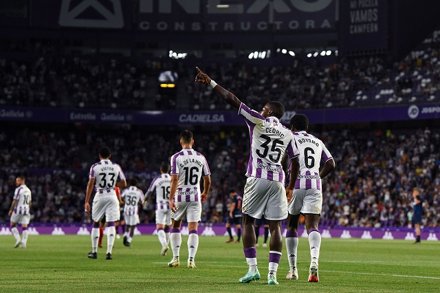 No obstante, ese percance no afectó al rumbo del partido ya que fue el Real Valladolid el que mantuvo el dominio. Tanto que no tardó en llegar el 1-0, en el minuto 20, con un centro de calidad de Iván Sánchez al segundo palo con el que conectó Cédric para inaugurar la cuenta del curso. Un gol para celebrar en unas gradas con casi 17.000 aficionados y para confirmar la capacidad competitiva del cuadro blanquivioleta, que dio continuidad a las señas de identidad mostradas en pretemporada, en especial a su presión alta y esa ferocidad para recuperar el balón. Moro, Iván Sánchez y De la Hoz pudieron hacer el segundo antes del descanso, con el peligro muy lejos del área propia, y Escudero ya en la prolongación del primer acto tuvo la más clara en una bonita jugada en la que Monchu la envió a la espalda de la defensa, Moro la recogió para desde la línea de fondo ponerla atrás, y el lateral vallisoletano llegó con energía aunque su disparo se fue alto.