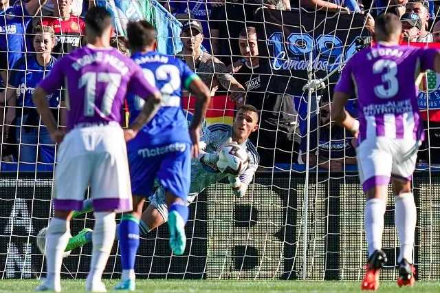El Real Valladolid logró una importante victoria por 2-3 en su visita al Getafe. Un triunfo que se le pudo escapar en la recta final, cuando el conjunto azulón dispuso de un penalti. Jordi Masip, que realizó varias intervenciones de mérito para amarrar los tres puntos, adivinó la intención al exblanquivioleta Enes Ünal y puso su rúbrica.