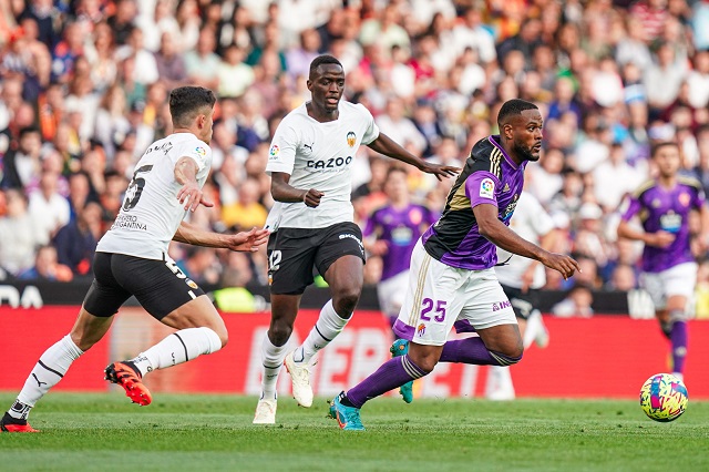 Soñó el conjunto de Pezzolano en el minuto 6, cuando Cyle Larin se aprovechó de un fallo grosero de Diakhaby al no acertar a controlar un pase siendo último hombre, ganó la posición, encaró a portero y definió con calidad pegado a la cepa del palo. El 0-1 dibujó el guion ideal en un Mestalla que se impacientaba y con un Valencia impreciso y nervioso, asentado en su campo ante un Pucela dominador del balón que, con calma, buscaba sus opciones. Cerraba bien las líneas el equipo che, lo que dificultó la evolución del juego blanquivioleta, pero los jugadores visitantes iban ganando confianza con la pelota según pasaban los minutos.