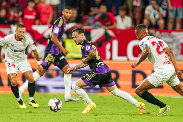 El primer punto de la temporada 2022-23 ha llegado tras mucha intensidad, brega y trabajo. Porque desde el inicio el Sevilla FC demostró su poder, mordió, apretó y puso contra las cuerdas al Pucela. Aguantó el púgil blanquivioleta, encajó los golpes. El de Rafa Mir en el minuto 2, Oliver en el 13', Nianzou de cabeza en el 15', Rekik de córner en el 19' o de nuevo Mir, la más clara, en el 26' que se vio frenado por un pie magistral de Asenjo. Uno tras otro, pero sin noquear a los castellanos, que tenían dificultades para salir con el balón jugado y para hilar acciones de ataque. Flotando contra la tormenta, pero con la cabeza fuera del agua. La tuvo Guardiola, también clara, en el 44' pero Bono salió ganando. Un instante de calma para acabar el primer acto con cuatro minutos de añadido de nuevo en tormenta, con un disparo de Lamela al palo y otro de Papu fuera.