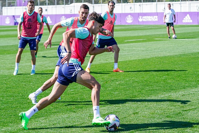 La primera plantilla del Real Valladolid se ejercitó este miércoles sobre el verde de los Anexos al Estadio José Zorrilla en una sesión en la que el equipo pucelano siguió aprovechando el parón liguero para continuar con su trabajo grupal, con estrategia y con partidos en espacio reducido. Con trabajo individualizado estuvieron Luis Pérez y Lucas Olaza, mientras que Roque Mesa también entrenó al margen a causa de una cervicalgia, por lo que se desconoce si estará de la partida ante Osasuna.