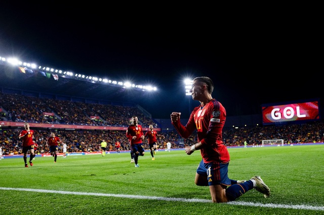 De inicio, el seleccionador renovaba casi todo el equipo respecto al que se impuso el jueves a Chipre en Limasol con Le Normand y Gavi como únicos jugadores con continuidad en el once. España salía decidida a llevarse el duelo ante un abarrotado Estadio José Zorrilla, que iba a disfrutar con prontitud gracias a la pizarra del cuerpo técnico de la Selección Española. Una falta lateral provocada a los cuatro minutos por Nico Williams, la convertía Ferran Torres en un balón perfecto al segundo palo donde la frente de Robin Le Normand mandaba el balón al fondo de la portería para alegría de la grada.