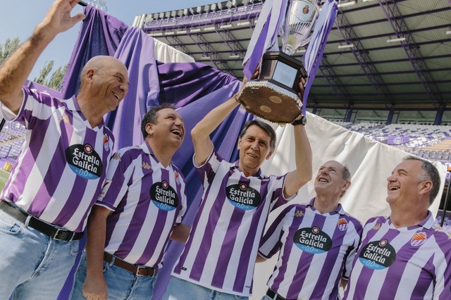 El capitán de aquella plantilla acudió a José Zorrilla junto a sus compañeros Minguela, Gail, y Eusebio, y el entrenador, Fernando Redondo para vestir 'su camiseta' y ser los mejores modelos y embajadores de las equipaciones. Las leyendas pucelanas que se reencontraron con la copa coincidieron en el diagnóstico de la nueva camiseta a la que catalogaron como "muy bonita y muy emotiva", al tiempo que pidieron que ojalá traiga "tantas alegrías" como aquella camiseta de 1984 y de esta forma el Real Valladolid pueda regresar de su mano a Primera División.