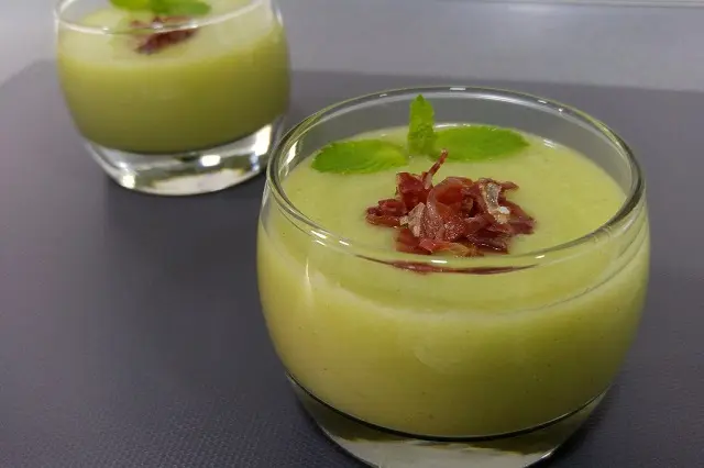 Es probable que en más de una ocasión, como primer plato, has optado por una pieza de melón acompañado de jamón serrano. Un delicioso entrante para los días más calurosos, aunque te ofrecemos una nueva propuesta algo más elaborada para no caer en los típicos platos veraniegos y con la que, sin duda, sorprenderás a tus comensales. En esta nueva entrada de nuestra sección de gastronomía de verano te traemos los pasos para elaborar un rico gazpacho de melón con jamón con la que acertarás seguro. Esta nueva receta es ideal para presentar como primer plato ante un segundo de carne o pescado, y que además de ser delicioso tiene su toque refrescante, salado acompañado de fruta para conseguir una dieta equilibrada.