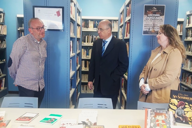 El subdelegado del Gobierno en Valladolid, Jacinto Canales, ha visitado este lunes Mojados, coincidiendo con la víspera del Día del Libro y del Derecho de Autor, para conocer de cerca, junto al alcalde del municipio vallisoletano, Adolfo López, el resultado de la campaña de animación a la lectura María Moliner, que promueve el Ministerio de Cultura. Con esta campaña se premia a 370 proyectos de bibliotecas municipales de toda España, de ellos, 360 reciben un premio de 2.772 euros, cada uno, y los diez primeros reciben 10.000 euros, para incrementar sus fondos bibliográficos.