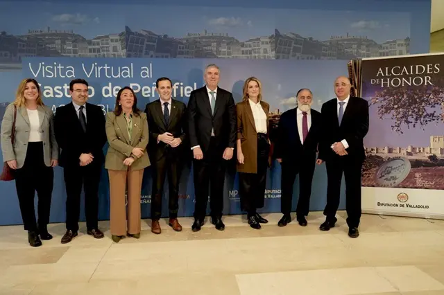 El presidente de la Diputación Provincial de Valladolid, Conrado Íscar, ha presidio este viernes 2 de febrero el acto de nombramiento y entrega de diplomas acreditativos como Alcaides y Alcaidesa de Honor del Museo Provincial del Vino al directivo José Vicente de los Mozos, a la actriz, Eva Martín y al periodista Javier Pérez Andrés. El evento se ha celebrado, como es tradicional en el emblemático Castillo de Peñafiel, y ha contado con la presencia, entre otras autoridades, de la consejera de Movilidad y Transformación Digital de la Junta de Castilla y León, María González Corral, de la delegada territorial de la Junta en la provincia, Raquel Alonso, del alcalde de Peñafiel, Roberto Díez, y del nuevo subdelegado del Gobierno en Valladolid, Jacinto Canales.