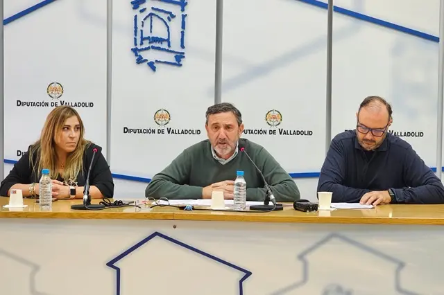 El portavoz del Grupo Provincial Socialista, Francisco Ferreira, acompañado de los diputados socialistas Javier Gómez y Dolores Mayo ha presentado este martes las 12 enmiendas al presupuesto de la Diputación de Valladolid por un importe de 9,4 millones de euros de los cuales 7 millones van dirigidos a los ayuntamientos, 1,5 millones de euros a temas de vivienda y otro gran bloque a proyectos sociales y medio ambiente. En concreto, el incremento de 4,5 millones en el Plan V es la principal enmienda de los socialistas ya que según defienden desde el PSOE, "el presupuesto del PP para 2025 recorta esta cantidad con respecto a 2024, siendo este fondo uno de los principales recursos económicos de los municipios para realizar obras e inversiones".