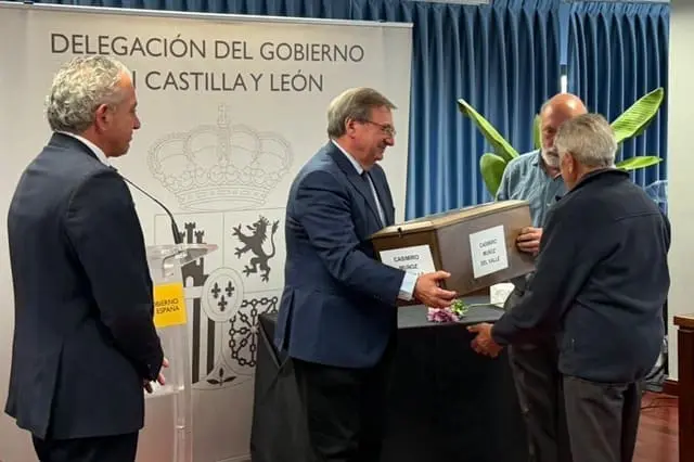 El Gobierno de España, a través de la Delegación en Castilla y León, ha hecho entrega este jueves 30 de octubre de los restos exhumados del vallisoletano Casimiro Muñoz del Valle, a su familia, tras ser hallados en el Valle de Cuelgamuros. Esta acción se enmarca dentro de las actuaciones que impulsa el Ministerio de Política Territorial y Memoria Democrática para la localización, identificación y restitución de personas fallecidas durante la Guerra Civil y trasladadas posteriormente a dicho recinto. El acto, de carácter institucional y privado, se ha celebrado en el mediodía de este jueves en la Delegación del Gobierno en Castilla y León en Valladolid, con la presencia del secretario de Estado de Memoria Democrática, Fernando Martínez, el delegado del Gobierno en Castilla y León, Nicanor Sen, y del equipo técnico responsable de la exhumación.
