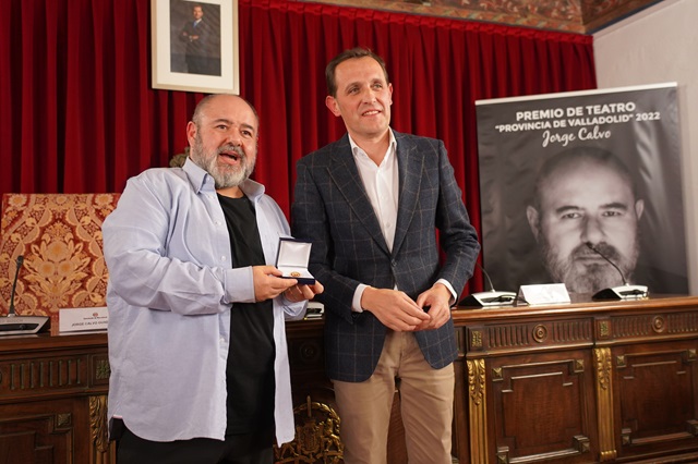 El presidente de la Diputación de Valladolid, Conrado Íscar, ha entregado este lunes el Premio de Teatro Provincia de Valladolid en su edición 2022 al actor Jorge Calvo, en un acto que se ha desarrollado en el Salón de Plenos de la Diputación de Valladolid y en el que el director de escena Luis Luque ha glosado la trayectoria del nuevo premiado. Tras la lectura del acta del jurado y la entrega del galardón, Conrado Íscar ha cerrado el acto asegurando que "la trayectoria, la calidad como actor y como persona, el compromiso irrenunciable y la integridad de Jorge Calvo están fuera de cualquier discusión", antes de hacer un breve recorrido por la trayectoria del actor, del que ha destacado "ese algo especial que diferencia a los grandes actores del resto".