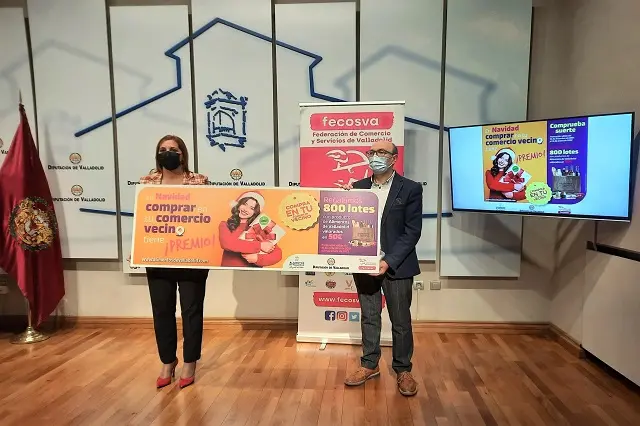La Diputación de Valladolid apoya esta iniciativa para promocionar y visibilizar el comercio de las localidades de Valladolid. La diputada de Consumo y Promoción Agroalimentaria, Inmaculada Toledano, ha presentado junto al presidente de Fecosva, Jesús Herreras, la cuarta campaña navideña que este año aumenta el número de participantes hasta 47 establecimientos comerciales. "Hemos repetido la campaña ya que ha tenido mucha aceptación entre los comerciantes y ha permitido crear sinergias entre los productores para dar a conocer el comercio de nuestra provincia junto con los alimentos de Valladolid", señala Herreras durante la presentación de la campaña en la institución provincial.