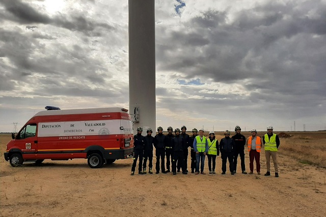 Los Bomberos de la Diputación de Valladolid se han formado en la evacuación y rescate de personas en los parques eólicos. La formación, en colaboración con Naturgy, se ha realizado junto al fabricante de aerogeneradores Vestas y las prácticas se han llevado a cabo en el parque eólico de Torozos. La empresa ha puesto a disposición de los más de 130 bomberos de los 6 parques de la provincia toda la información necesaria para realizar un rescate con total seguridad en un parque eólico. La formación teórica se ha complementado con un ejercicio práctico en un aerogenerador del parque de Torozos, que la compañía energética opera en la provincia desde este verano.