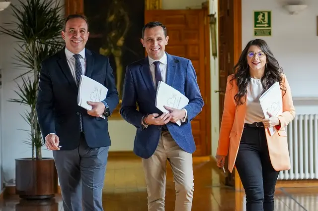 El presidente de la Diputación de Valladolid, Conrado Íscar, acompañado del vicepresidente primero y responsable de Hacienda, Víctor Alonso, y de la vicepresidenta segunda, Gema Gómez, ha presentado hoy el Proyecto de Presupuestos de la Institución provincial para 2023 que alcanza la cifra de 144.525.441'76 euros, lo que supone un incremento del 13'01% con respecto a las cuentas del presente ejercicio. Como ha señalado en su intervención Conrado Íscar, ello es posible por el incremento de la financiación tanto del Estado como de la Junta de Castilla y León, la enajenación de una nueva parcela de Villa del Prado, el incremento de los Fondos Europeos y a que "gracias a la buena salud financiera de la Diputación de Valladolid, recurriremos a una operación de préstamo por importe de 4'4 millones de euros, pese a lo que seguiremos teniendo una ratio de endeudamiento del 16'52% muy lejos, por ejemplo, del casi 120% de ratio del Gobierno de España".