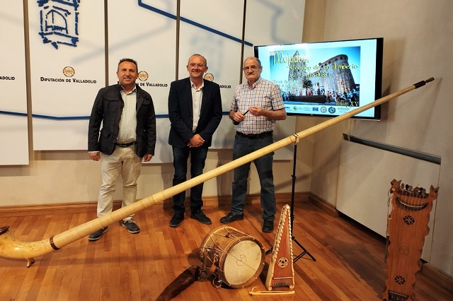 Los instrumentos musicales de la Edad Media han tomado el Palacio de Pimentel este lunes por la presentación de la XV edición de 'Mojados Corazón de un Imperio'. El alcalde de Mojados, Adolfo López, junto al diputado del servicio de Contratación y Nuevas Tecnologías, Alfonso Romo, ha sido el encargado de desgranar el intenso y variado programa de actividades que tienen preparado en la villa vallisoletana para el próximo fin de semana dedicado a la figura de Carlos V.