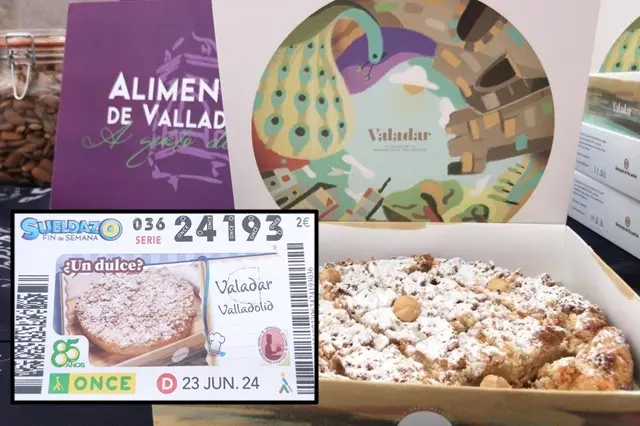 'Valadar', el dulce de la provincia de Valladolid, protagoniza el cupón del Sueldazo de la ONCE de este domingo 23 de junio. Se trata de una edición especial, perteneciente a la serie '¿Un dulce?', con la que la organización difunde algunos de los dulces más representativos de la rica gastronomía del país. Esta iniciativa nace fruto de la colaboración entre la ONCE y la Confederación Española de Empresarios Artesanos de Pastelería. Así, cinco millones y medio de cupones, ilustrados con una fotografía de 'Valadar', están a la venta desde el pasado lunes y en el que los agraciados podrán ganar 5.000 euros al mes durante 20 años y 300.000 euros al contado.