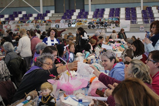 Alrededor de 600 encajeras se han dado cita este sábado en el Polideportivo Infanta Juana de Zaratán para celebrar una década de bolillos. Las participantes han llegado desde distintos puntos de toda Castilla y León y de varias ciudades del país en el Encuentro de Encajeras, que lleva marcado en su calendario desde hace ya diez años y no han querido perderse una nueva oportunidad de disfrutar de su pasión. Tradición, solidaridad y arte han estado presentes durante toda la jornada, que organizada por la Asociación local de Encajeras y el Ayuntamiento de Zaratán, también ha congregado a más de un millar de visitantes que han recorrido las diferentes calles de mesas dispuestas por el espacio observando las labores de estos hombres y mujeres.