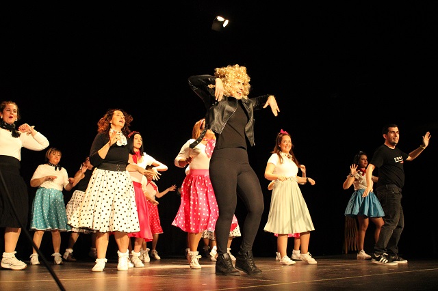 El emblemático espacio cultural abría sus puertas a las 19.00 horas para arrancar con la sexta edición del Encuentro de Chirigotas que este año contaba con la participación de tres grupos locales formados por vecinos del municipio que no dudaron en sacar su versión más humorística y ofrecer a sus familiares, amigos y conocidos una tarde de lo más entretenida y animada. El telón se abrió al ritmo de 'Grease' donde una decena de bailarinas de las Frays se vistieron para la ocasión como muestran los protagonistas de esta película que también contó con John Travolta y Olivia Newton-John sobre las tablas.