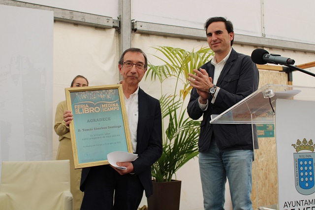 Este autor castellano y leonés pronunció en la Feria del Libro, arropado por el regidor medinense, Guzmán Gómez, la concejala de Ferias y Festejos Tradicionales, Concepción Lucas, el coordinador de la Feria, José Ignacio García, el presidente de la Mancomunidad Tierras de Medina, Moisés Santana, entre otros. Sánchez Santiago pronunció un pequeño ensayo en el que manifestó que "se puede saber con las palabras o se puede saborear con las palabras" porque para él, la labor de la lectura se basa en la búsqueda de lo desconocido a través de las palabras puesto que "las palabras saben mucho más de nosotros".