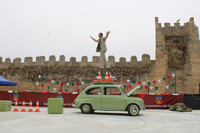 La mañana del domingo finalizó con un show humorístico, muy propio del teatro de calle, para hacer llegar el circo a las familias. La Corrala del Palacio del Caballero acogió el número de Javier Ariza y su conocido 'Carman', una comedia callejera protagonizada por un excéntrico showman y un seat 600. Una divertida actuación en la que un coche icónico de nuestro país cobra vida para terminar la función moviéndose por si mismo sin conductor en una rutina musical y circense. Los malabares, clown, equilibrio y baile hicieron las delicias de los pequeños y mayores que no podían aguantar la risa con los chascarrillos del humorista mientras grababan con sus teléfonos móviles los mejores momentos para tenerlos para siempre de recuerdo.