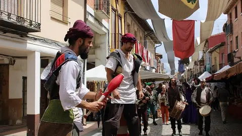 El corazón de Tierra de Campos viaja durante este fin de semana al medievo por la XXII Mercado Comarcal y XIX Feria Agroalimentaria de Villalón de Campos. La localidad vallisoletana ha inaugurado una nueva edición de uno de sus mercados más conocidos que reúne a productores locales, artesanos, y un sinfín de puestos dedicados a labores y oficios tradicionales. Las calles se engalanaron con balcones decorados recreando aquella villa del Siglo XIII, que es precisamente, la época de mayor auge de la industria mercantil de Villalón.