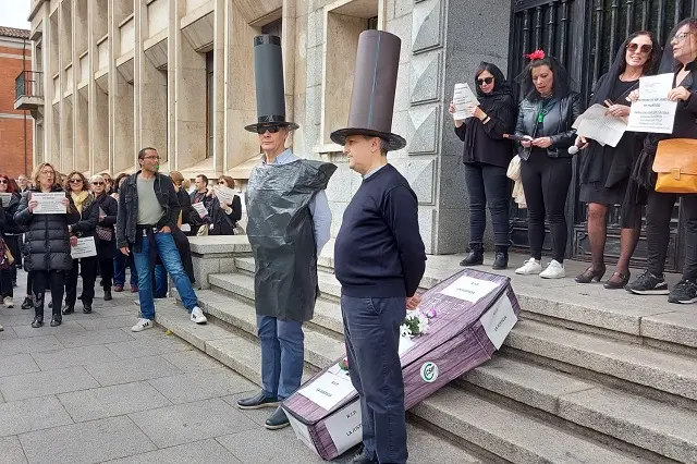 Decenas de funcionarios recrean el 'entierro' de la Justicia en Valladolid mientras la huelga paraliza un centenar de juicios al día