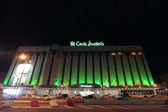 La fachada de El Corte Inglés de Valladolid se ilumina de verde para apoyar la lucha contra el cáncer