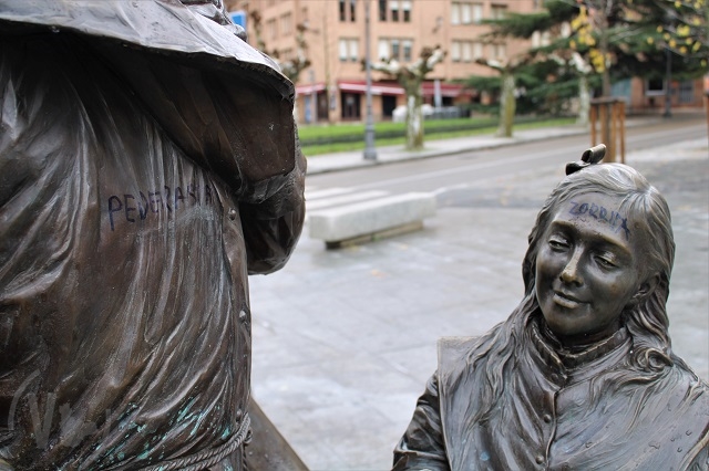El Monumento al Cofrade de Valladolid ha sufrido esta noche pintadas con insultos en un nuevo acto de vandalismo. La escultura ha aparecido con las palabras "pederasta" y "zorrita" escritos en el dorso del cofrade y en la frente de la escultura de la niña. Por el momento, se desconoce al autor o autores de estas pintadas insultantes que dañan la conocida estatua que preside la Plaza de Portugalete y representa a la tradición de la Semana Santa vallisoletana.
