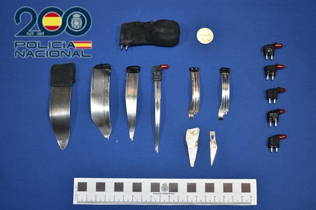 Una vez localizado el turismo, se realizó una inspección del mismo para lo que los policías necesitaron la ayuda de guías caninos quienes con un perro especializado en la búsqueda de dinero localizaron en un hueco en la parte inferior del volante dos bolsas con dinero. Una contenía 3.370 euros y la otra 8.000 euros. La búsqueda de los agentes del Cuerpo Nacional de Policía localizó también, detrás de una tapa embellecedora del habitáculo del conductor, una bolsa con tres documentos de identidad falsos de diferentes nacionalidades y escondido en otra tapa embellecedora del suelo del copiloto diversos espadines metálicos con elementos electrónicos y una petaca forrada con tela de la que sobresalen dos pines metálicos.