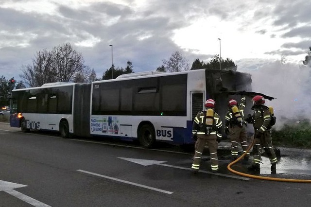 El conductor dio el aviso inmediatamente tras percatarse del incendio en el motor del vehículo y gracias a la rápida actuación del Cuerpo Municipal de Bomberos se logró controlar las llamas, según informan desde Auvasa.