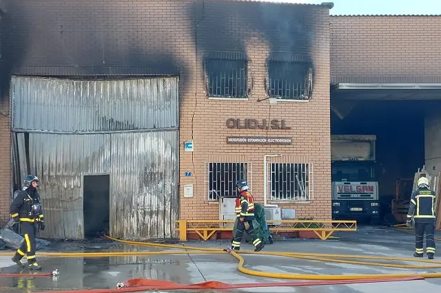 Un incendio originado en la tarde de este sábado en el polígono industrial de Santovenia de Pisuerga ha obligado a intervenir a varias dotaciones de los parques de Bomberos de la Diputación de Valladolid, trasladados desde Arroyo de la Encomienda, Tordesillas y Peñafiel. El fuego se ha declarado en la fábrica de joyas OlidJoya y las llamas han provocado una negra columna de humo visible desde varios puntos de la provincia y capital vallisoletana, lo que ha alertado a los vecinos tanto de la ciudad como de la propia localidad de Santovenia.