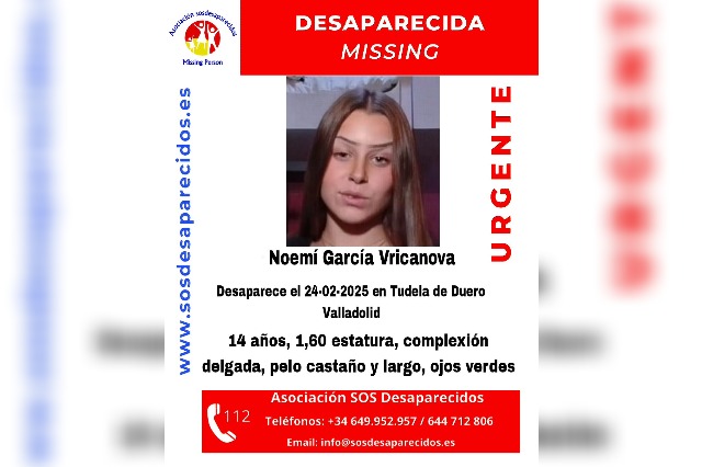 La menor de 14 años que se encontraba desaparecida desde hace una semana en el municipio de Tudela de Duero ha sido localizada este lunes 2 de marzo. La Asociación SOS Desaparecidos ha desactivado a última hora de la tarde la alerta por la búsqueda de la adolescente, Noemí García Vricanova, de la que no se tenía noticias desde el pasado 24 de febrero. La familia y amigos de Noemí pidieron la colaboración ciudadana para intentar localizar a la joven y que regresara a casa, y finalmente, hoy ya ha sido localizada.