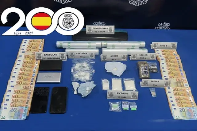 Las pesquisas se centraban en identificar al presunto autor, lográndolo tras las numerosas vigilancias y seguimientos realizados que demostraban su ilícita actividad. El 3 de agosto tras la oportuna autorización de entrada y registro domiciliario, por parte del Juzgado de Instrucción número 1 en funciones de Guardia, se procedió al registro de la vivienda del detenido. Durante la intervención de la Policía Nacional fueron localizados 90 gramos de speed, 80 gramos de cocaína, 160 gramos de hachís, 19 pastillas de éxtasis, 3 gramos de MDMA, 1.800 euros en efectivo, así como básculas, bolsas de plástico con sus recortes, envasadoras y demás útiles destinados al tráfico de drogas al menudeo.