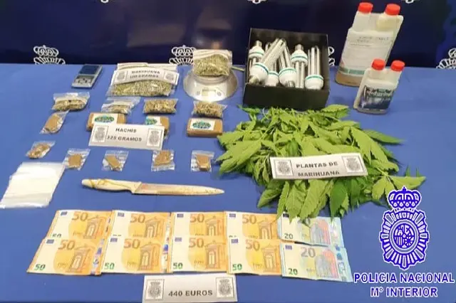 El material intervenido ha sido 325 gramos de hachis, 230 gramos de marihuana, 440 euros en efectivo, numerosos efectos para la elaboración y venta de las sustancias estupefacientes al menudeo. El valor total de las sustancias intervenidas en el mercado ilícito asciende a 2.800 euros.