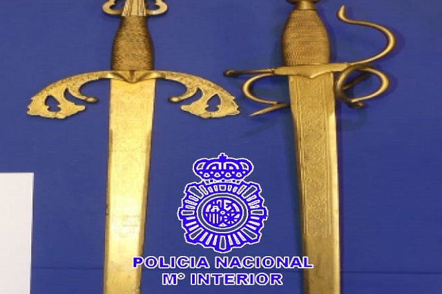 De la misma manera habría actuado en el primer domicilio, consiguiendo entrar hasta el recibidor de donde pudieron sacarle los moradores, si bien allí no llegó a esgrimir las espadas. Se intervinieron dos espadas metálicas de color dorado de 58 cms de hoja.