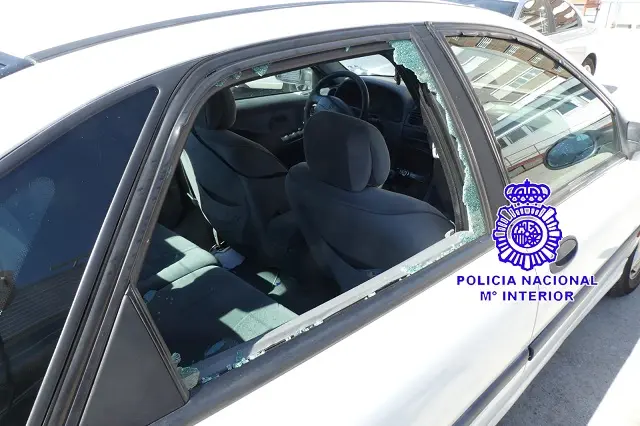 La ventana delantera izquierda del vehículo afectado presentaba señales de haber sido forzada mediante palanca y la ventana trasera derecha estaba fracturada con todo el interior revuelto y la guantera abierta. En la luna exterior del establecimiento no se llegó a realizar un hueco por el que poder acceder pese a las fracturas visibles del cristal. Igualmente en la acera se encontraban los restos del ladrillo arrojado al parecer contra el bar por el arrestado. Los propietarios del bar y del vehículo estacionado manifestaron a los agentes que no echaban en falta ningún efecto del interior.